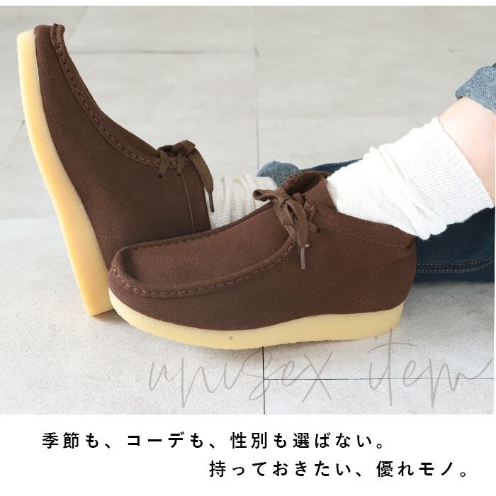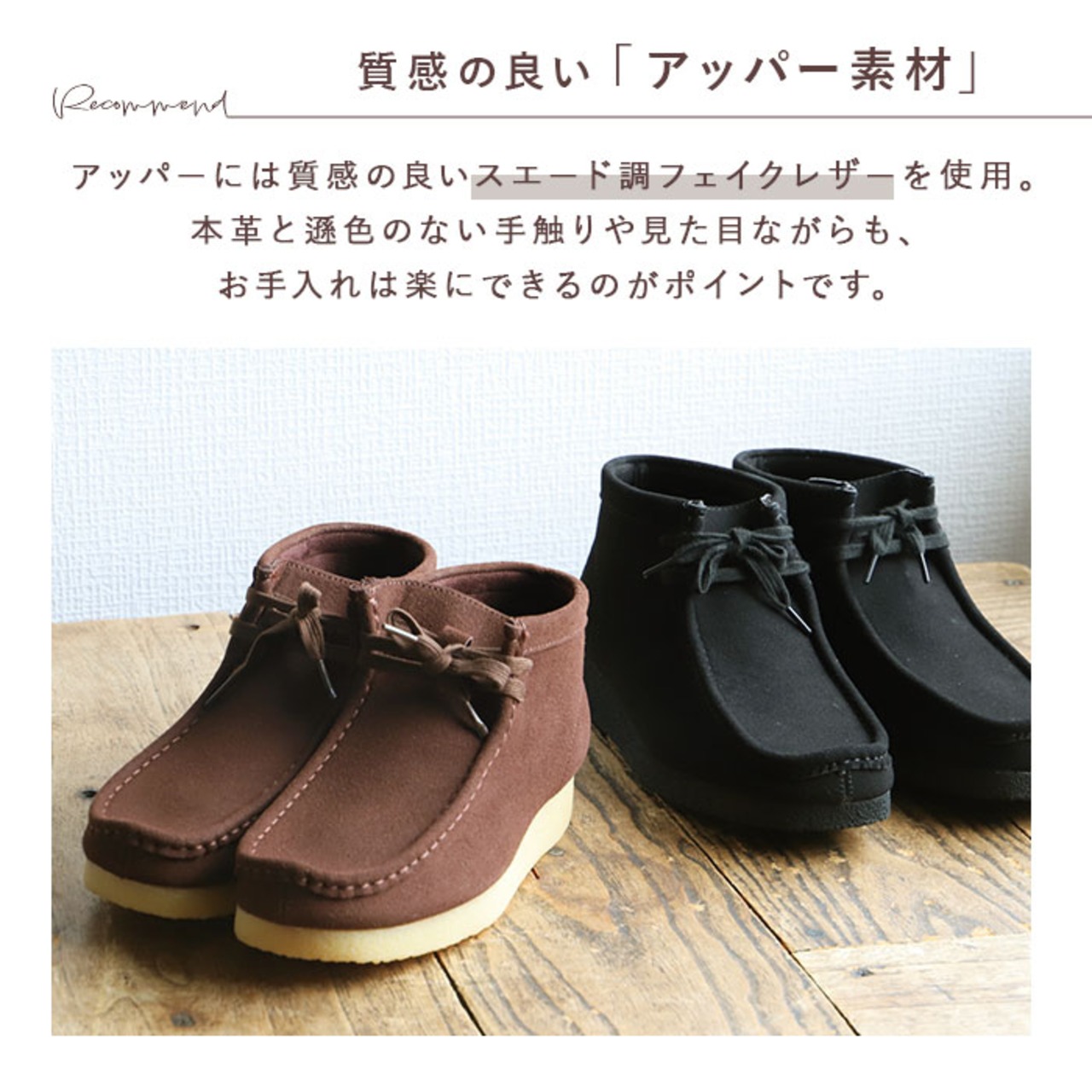 ・アッパーには質感のよいスエード調フェイクレザーを使用。本革と遜色のない手触りや見た目ながらも、お手入れは楽ちん!
