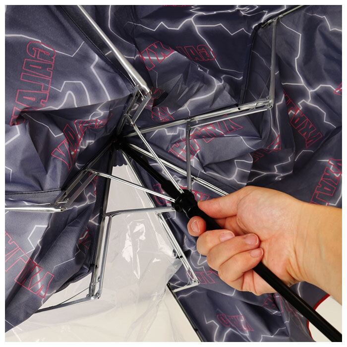 ・お子さまが手指を挟みにくいよう配慮された安全ろくろ付きで、傘生地がスムーズに開閉できる手開きタイプ。
