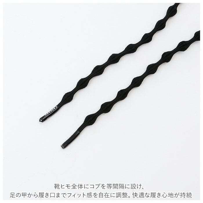 ・靴ヒモ全体にコブを等間隔に設け、足の甲から履き口までフィット感を自在に調整。快適な履き心地が持続。