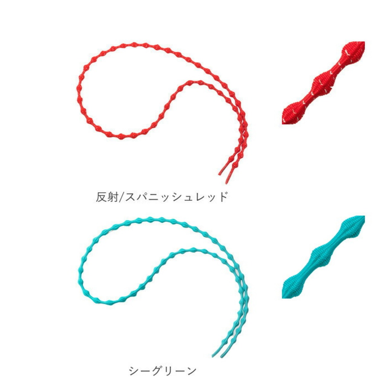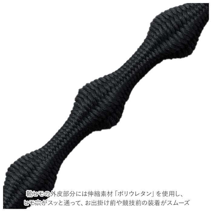 ・さらに、靴ヒモの外皮部分には伸縮素材「ポリウレタン」を使用し、ヒモ穴がスッと通って、お出掛け前や競技前の装着がスムーズ。