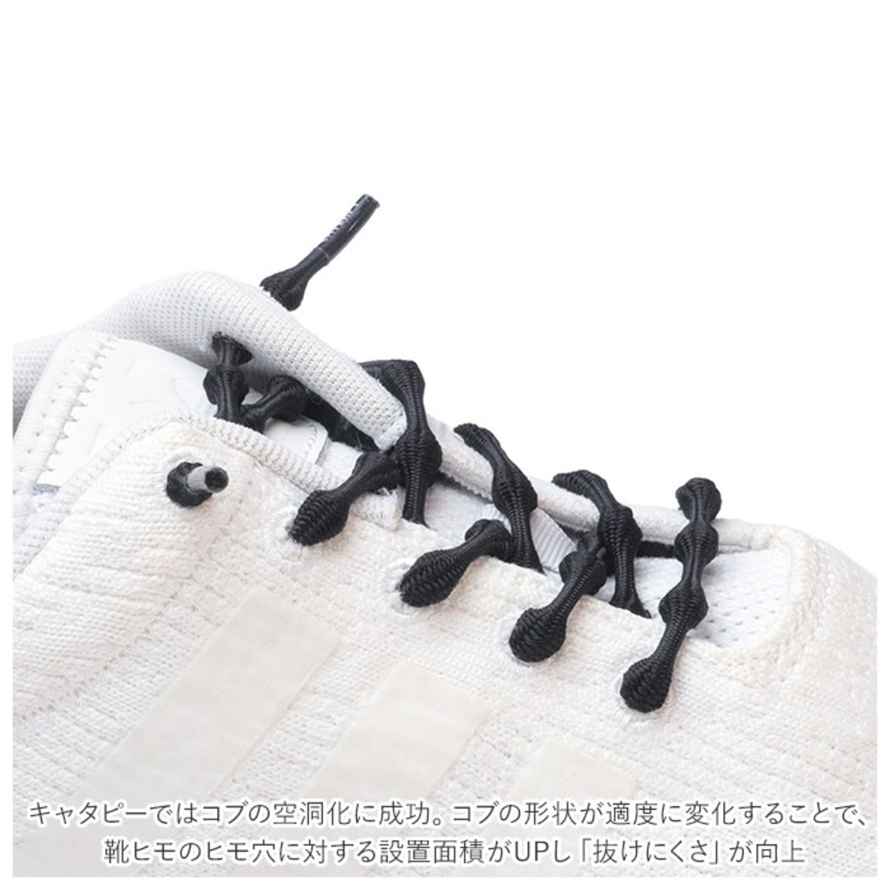 ・従来品の「キャタピラン+(プラス)」に比べ、キャタピーではコブの空洞化に成功。コブの形状が適度に変化することで、靴ヒモのヒモ穴に対する設置面積がUPし「抜けにくさ」が向上。