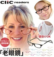世界中のセレブが愛用する、お洒落で機能的なリーディンググラス(老眼鏡)、クリックリーダー。レンズとレンズがマグネットで接続されているため、掛けたり外したりが煩わしくなくとってもスムーズ!テンプルが後ろで繋がっていて首から提げられるから、見た目もおしゃれで眼鏡が行方不明になることもありません。テンプルの長さが調節できるのも嬉しいですね♪カラーラインナップも豊富だからお気に入りがきっと見つかります♪