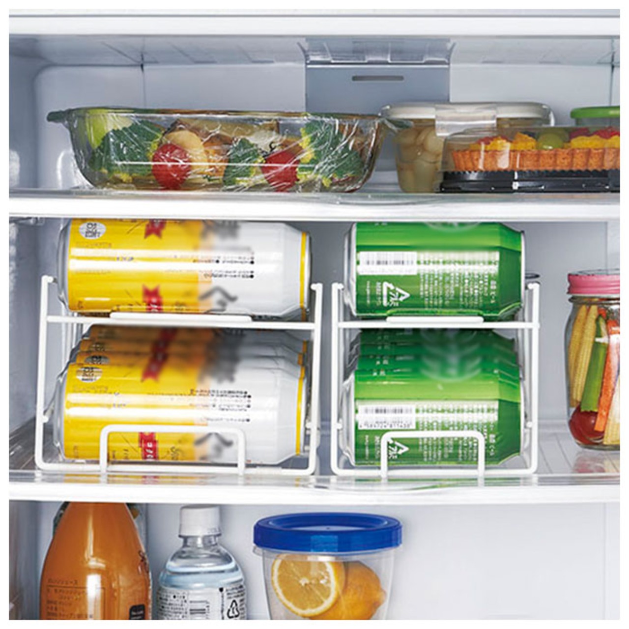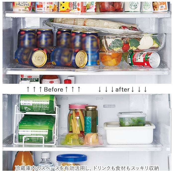 ・冷蔵庫内のスペースを有効活用することで、ドリンクも食材もスッキリ収納できる便利アイテム。