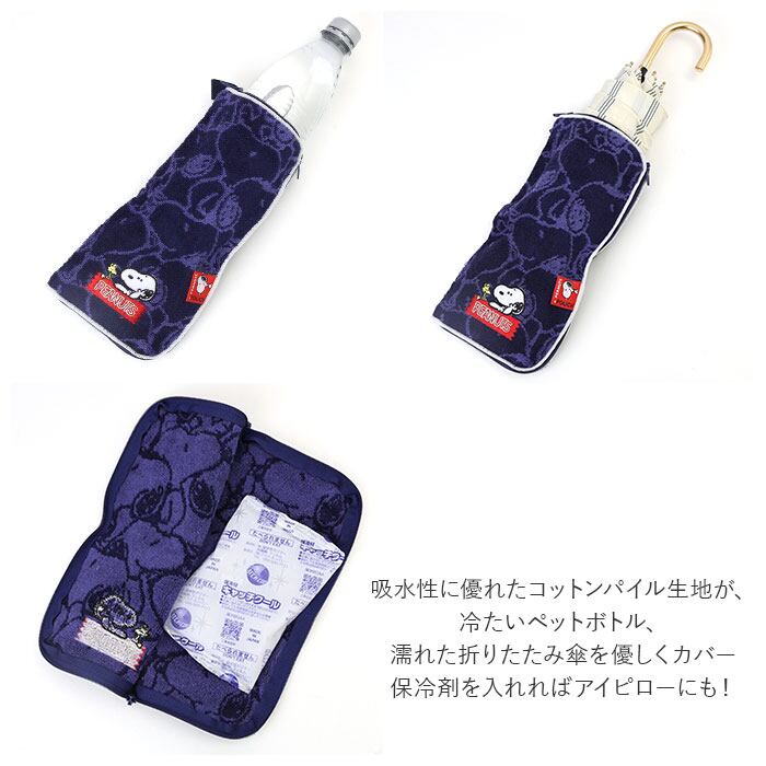 ・吸水性に優れたコットンパイル生地が、冷たいペットボトル、濡れた折りたたみ傘を優しくカバー。