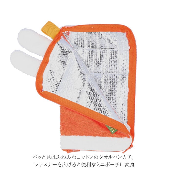 ・パッと見はふわふわコットンのタオルハンカチ、ファスナーを広げると便利なミニポーチに変身。
