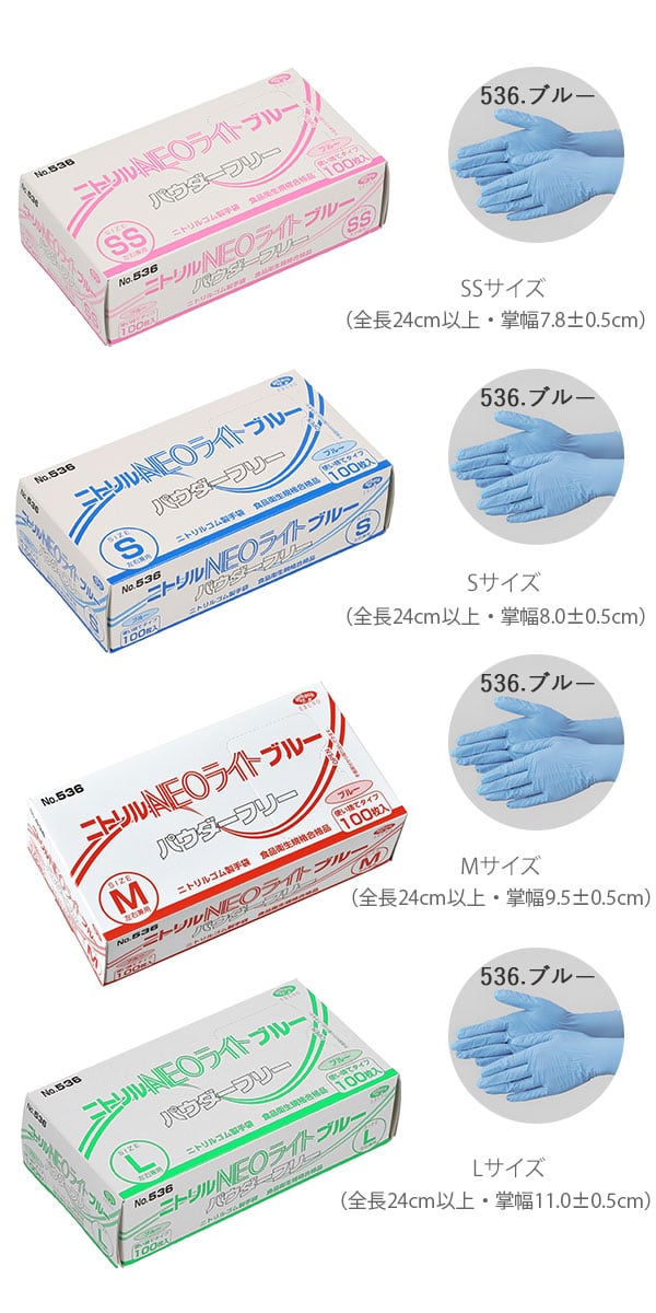Lサイズ:全長24cm以上・掌幅11.0±0.5cm