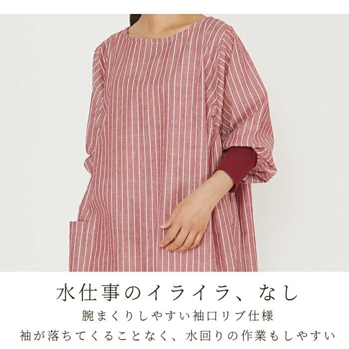 ・腕まくりしやすい袖口リブ仕様。水回りの作業もしやすく、下に着ている洋服を汚れからしっかりガード◎