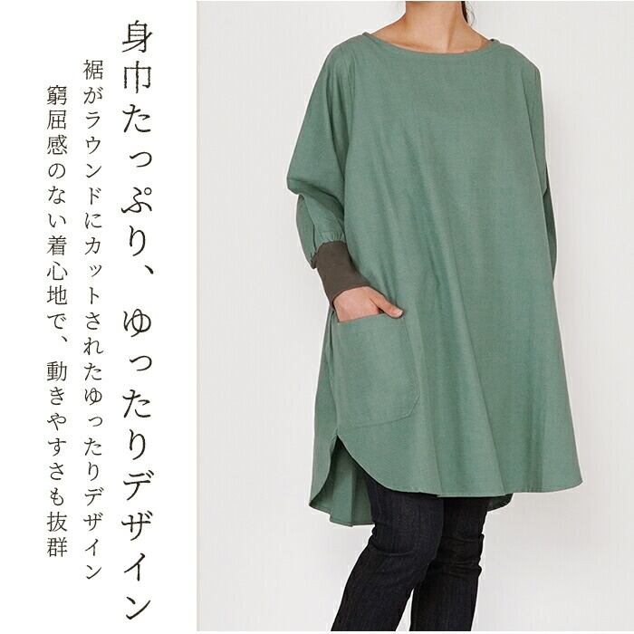 ・裾がラウンドにカットされたゆったりデザイン。窮屈感のない着心地で、動きやすさも抜群。