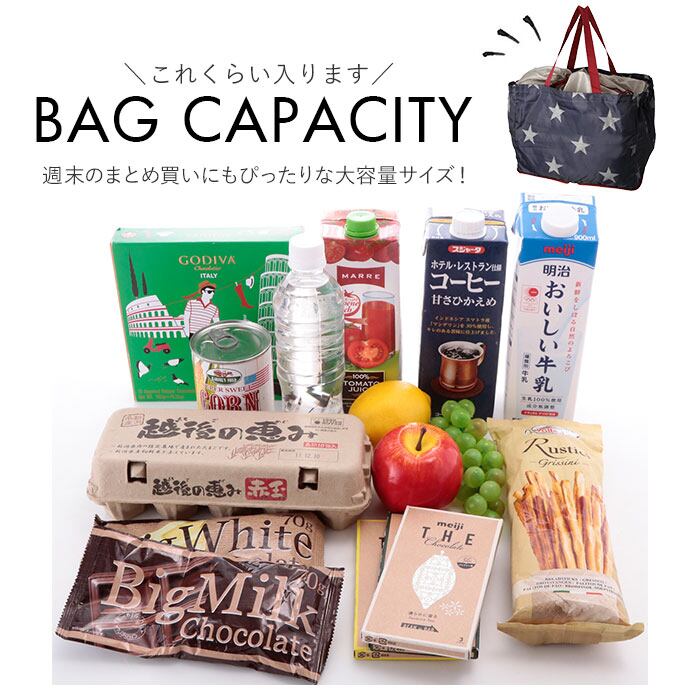 ・週末のまとめ買いにも余裕で対応できる大容量サイズ!大きめの野菜や果物、ペットボトルもしっかり入る。