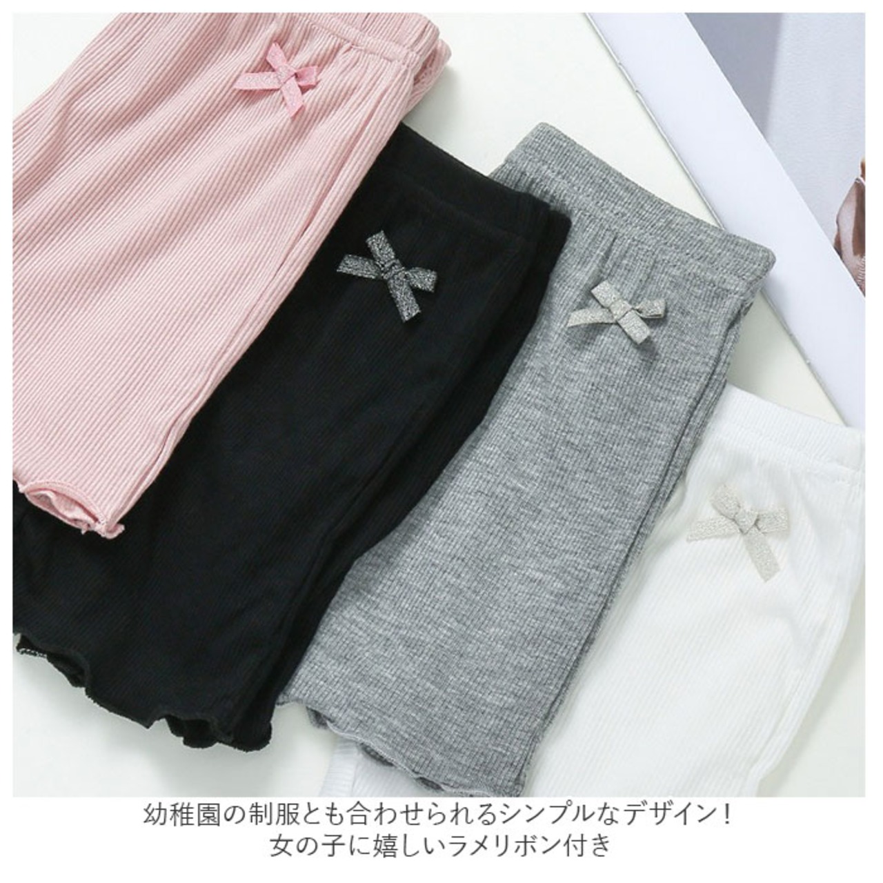 ・幼稚園の制服とも合わせられるシンプルなデザイン!女の子に嬉しいラメリボン付き。