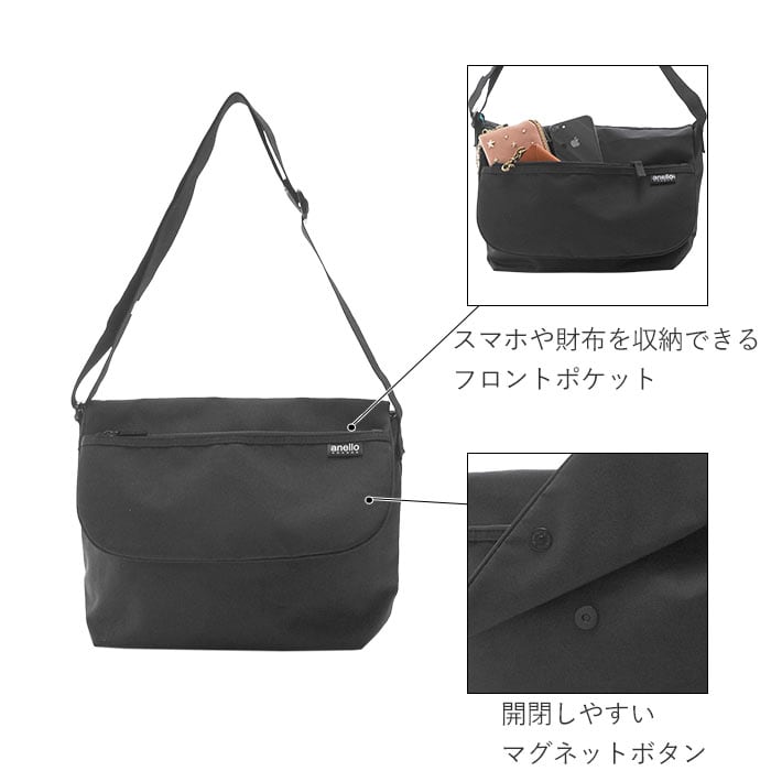 アネロ ショルダーバッグ 通販 レディース メンズ 斜めがけ 軽量 スポーツ 旅行 anello ショルダー メッセンジャーバッグ 撥水 はっ水 無地 シンプル おしゃれ 通勤 通学 マザーズバッグ ママバッグ サブバッグ 黒 ブラック シンプル フェス 野外
