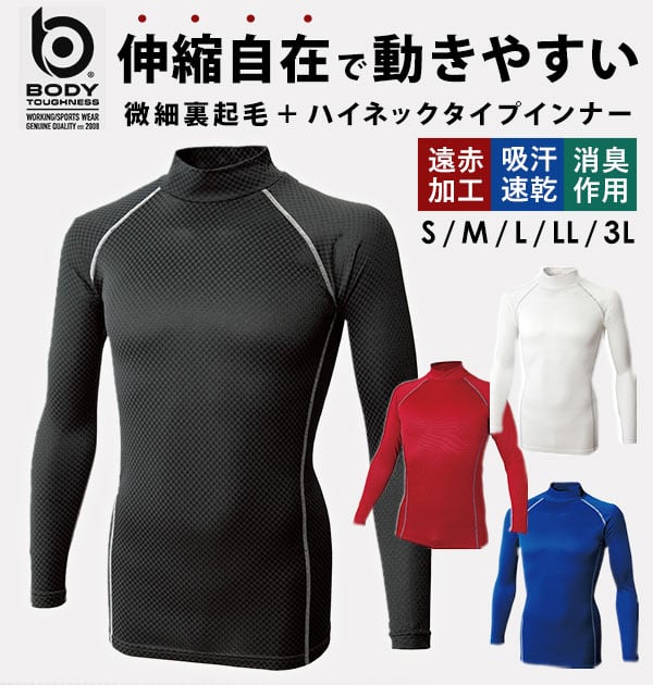 おたふく jw172 メンズ インナー 通販 長袖 アンダーシャツ ハイネック インナーシャツ 下着 肌着 ボディタフネス 裏起毛 薄手 遠赤加工 BODY TOUGHNESS 吸汗 速乾 パワーストレッチ 防寒 保温 作業着 作業服