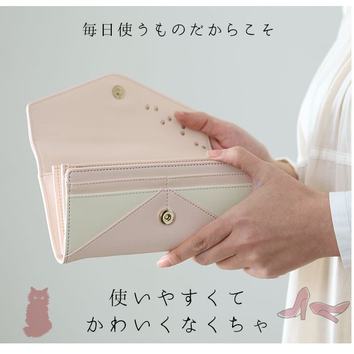 長財布 V字 ビジュー レター プレート 猫