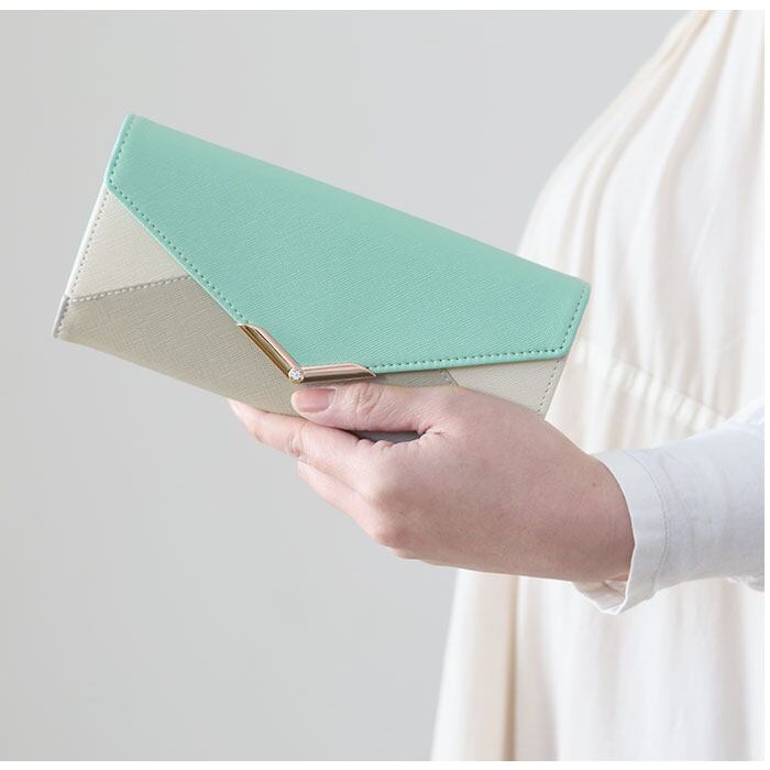 ・マグネット式で開閉しやすいフラップ部分に、4種類の印象的なプレートを配置したレター型ウォレット。