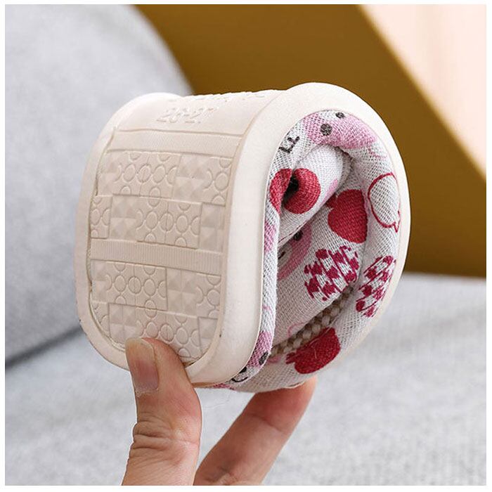 ・スリッパ底面にはしっかりと溝の刻まれたPVCアウトソールを採用。フローリングの床でも滑りにくく、お子さまが階段を昇り降りする時でも安心。