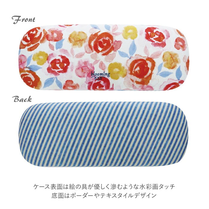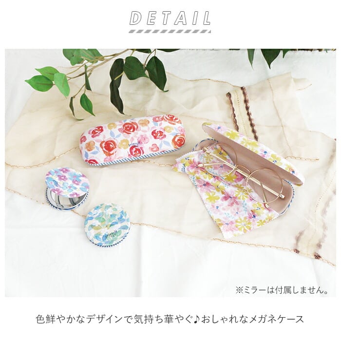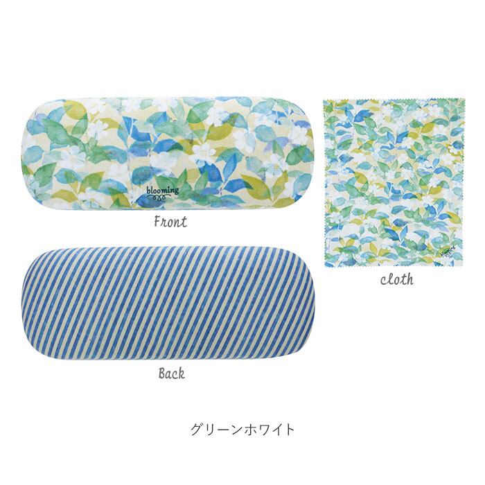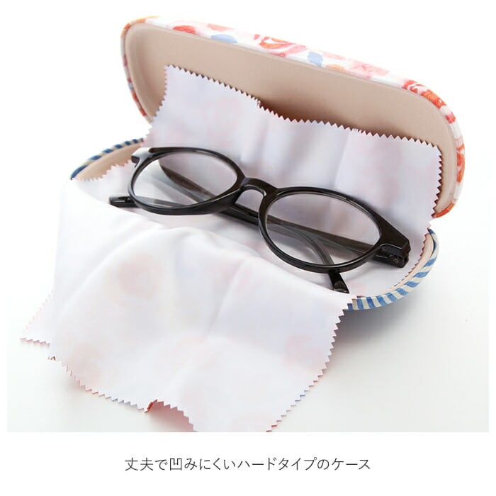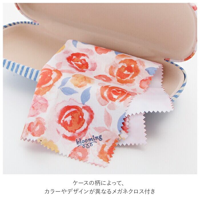 ・ケースの柄によって、カラーやデザインが異なるおしゃれなメガネクロス付き。(※Bloomingシリーズでは、ケースの柄と同じ花柄のクロスが付属)