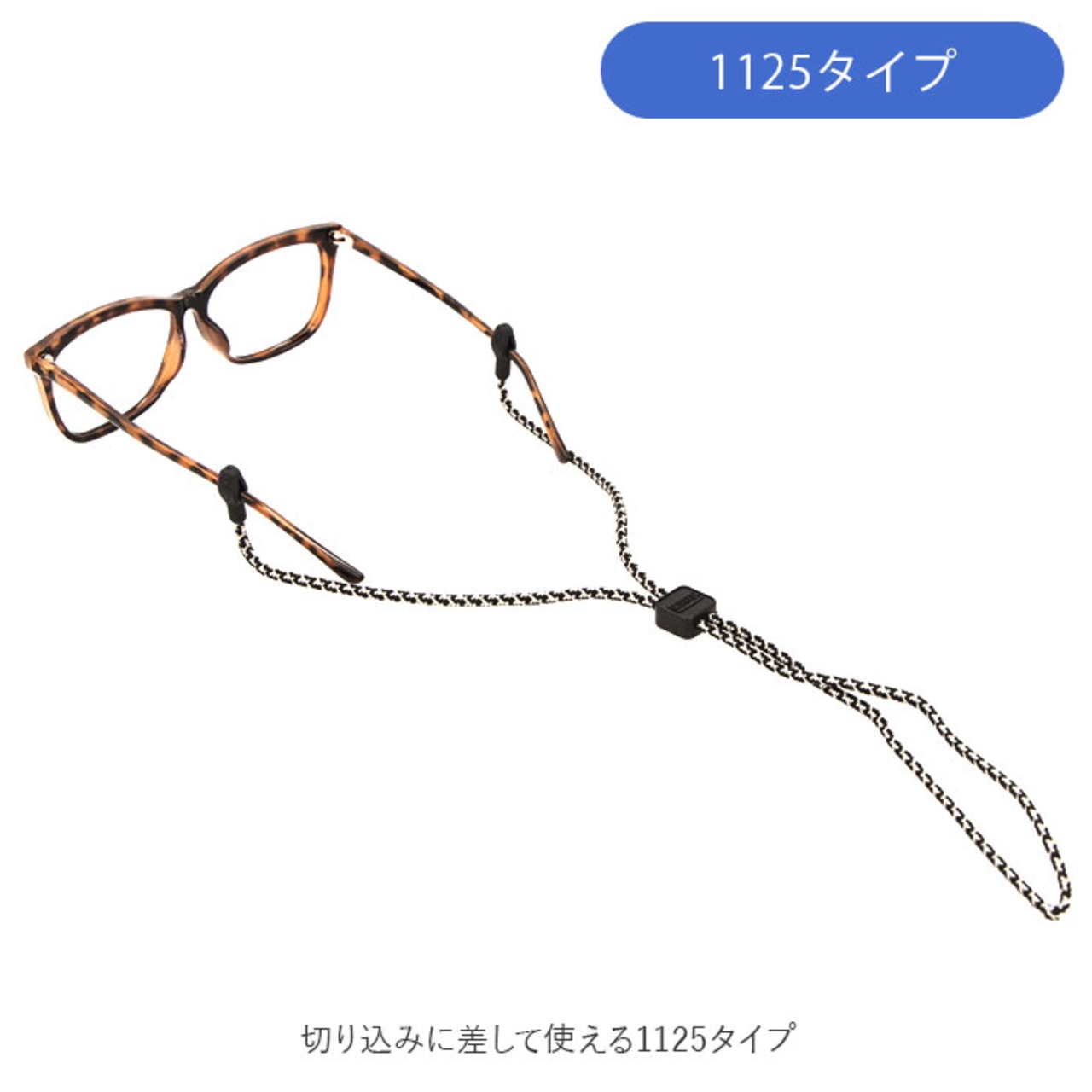 ・ゴムパーツはテンプルの先を押し込むだけで装着できる1123タイプと、切り込みに差して使える1125タイプの2種類から選べる!