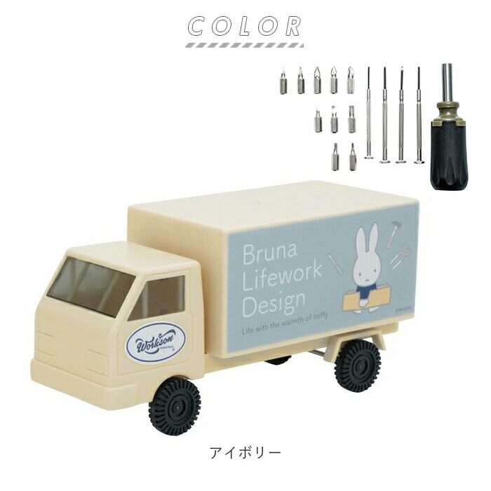 ・ミッフィーちゃんイラストが描かれたトラックの荷台が、ドライバーボックスになったユニークなツールセット。