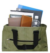 本体はA4ファイルが縦に楽に入る大きさです。内側は携帯やキーケースを入れるのに便利なポケットが2つ。底板はクッション材入りで衝撃を和らげます。本体前面/裏面に、ファスナー付き、マジックテープ付きの大きめポケットが付いています。側面にもそれぞれ小物が入れられるポケットが付いています。