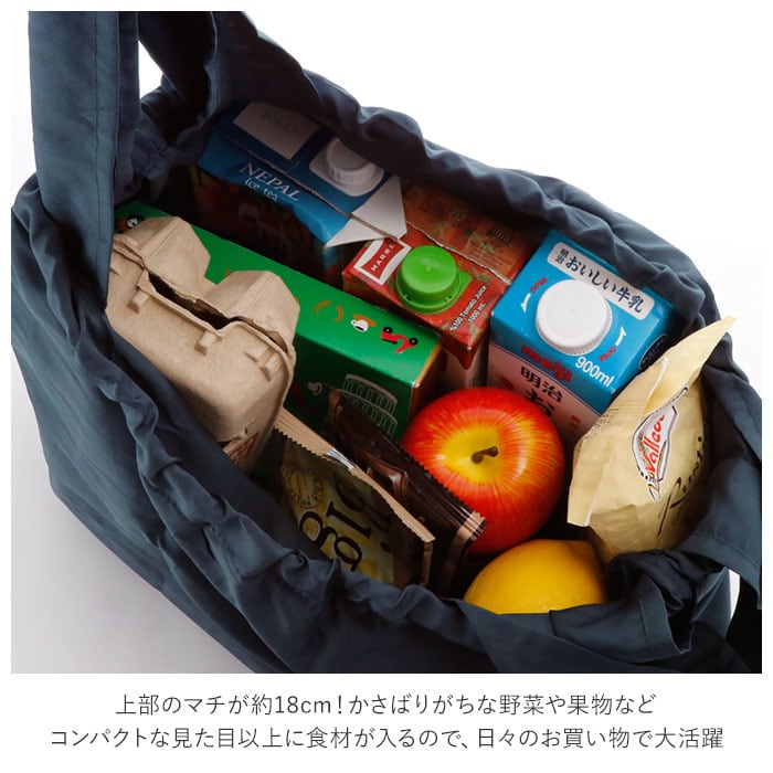 ・上部のマチが約18cm!かさばりがちな野菜や果物など、コンパクトな見た目以上に食材がしっかりと入るので、日々のお買い物で大活躍。