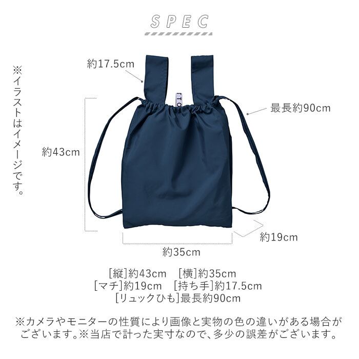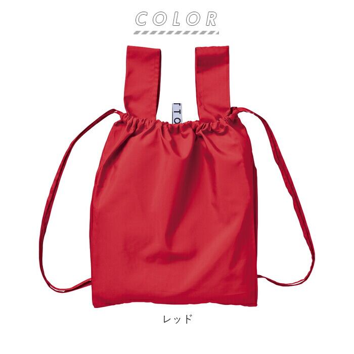 ・手持ちのエコバッグとしてはもちろん、巾着のひもを両肩に通せば、かわいいリュックとして使える2WAY仕様。両手が空くので、ラクラク持ち運びできる!