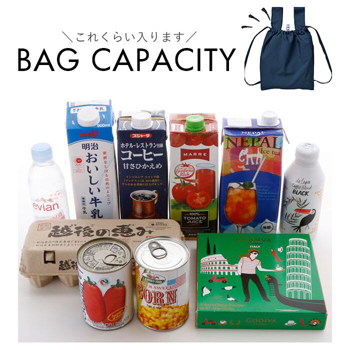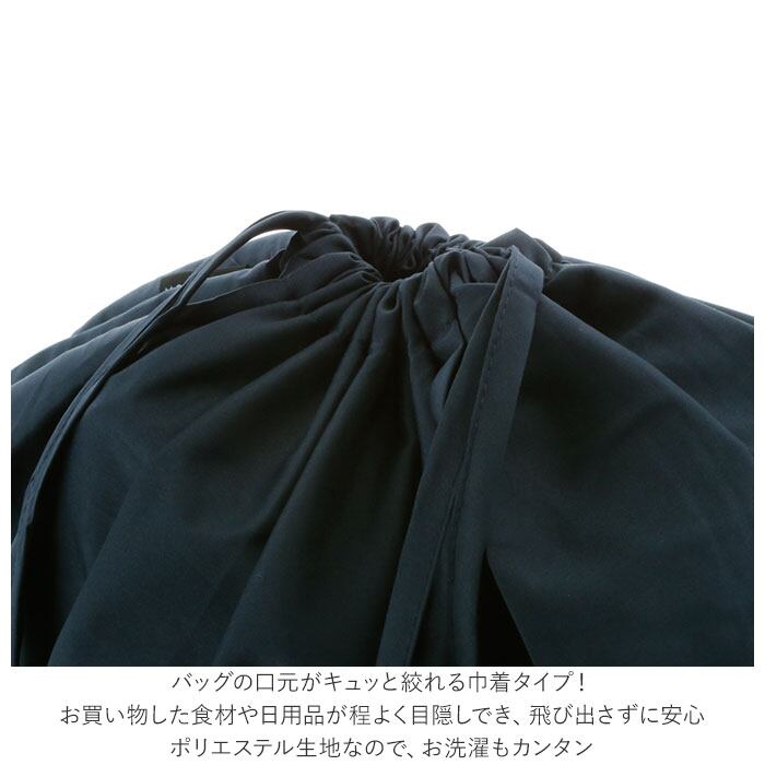 ・バッグの口元がキュッと絞れる巾着タイプ!お買い物した食材や日用品の程よく目隠しできて、細々したものも飛び出さず安心。