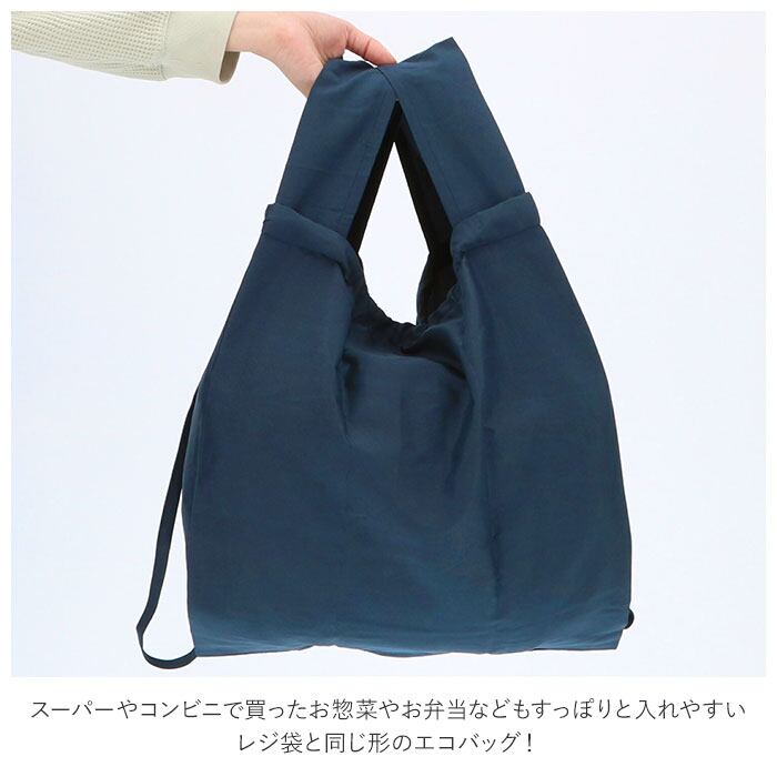 ・スーパーやコンビニで買ったお惣菜やお弁当などもすっぽりと入れやすい、レジ袋と同じ形のエコバッグ!