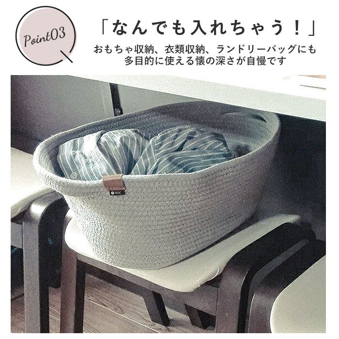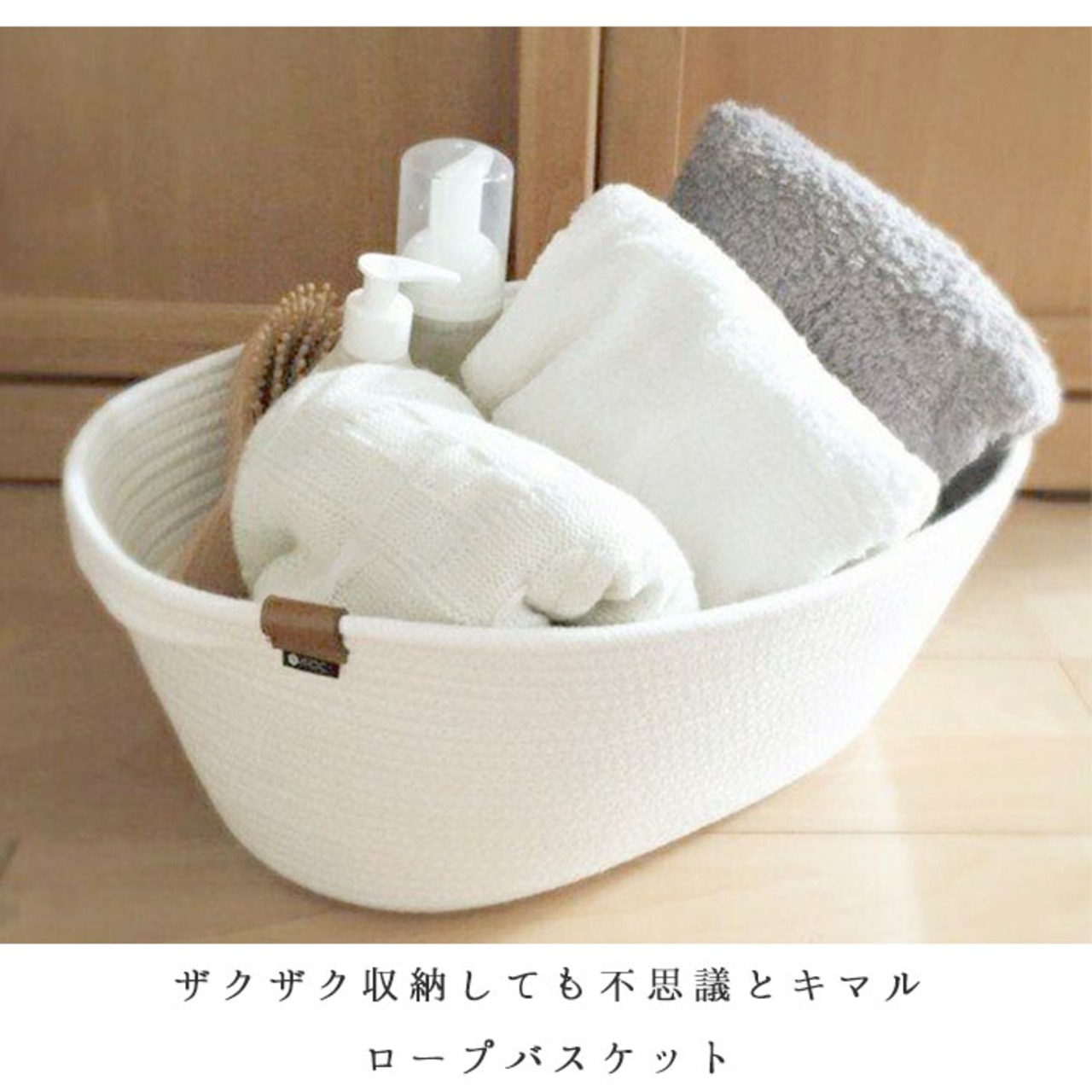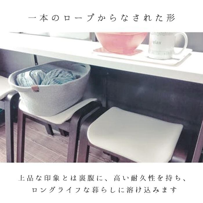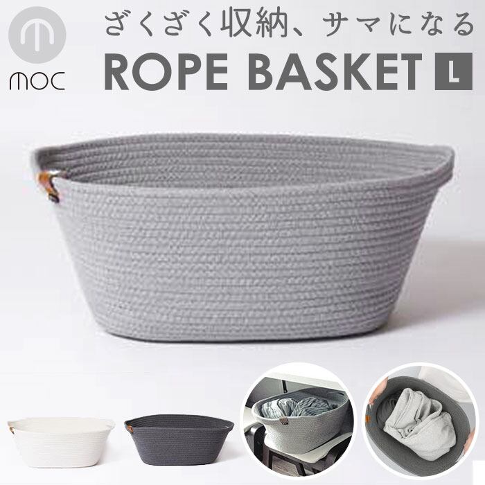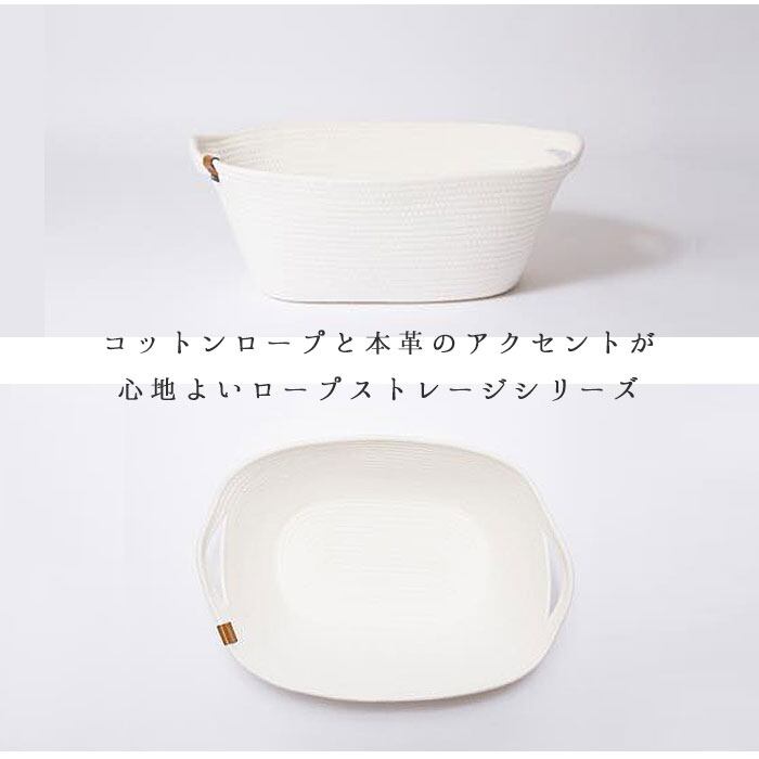 バスケット かご おしゃれ 通販 収納 シンプル ロープバスケット カゴ 無地 北欧 収納ボックス 収納ケース 丸 楕円 タオル パジャマ 衣類 カバン リビング インテリア 布 コットンロープ 上品 モダン ROPE STORAGE ロープ ストレージ Lサイズ MOC モック 東洋ケース