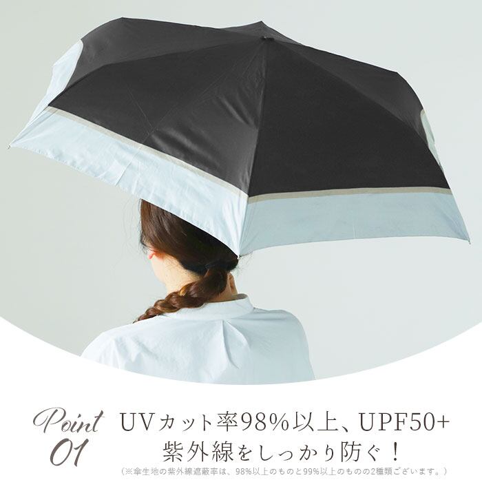 ・UVカット率は98%以上、UPF50+と、日焼け対策もばっちり!(※傘生地の紫外線遮蔽率は、98%以上のものと99%以上のものの2種類ございます。)