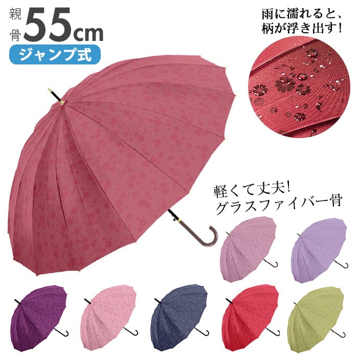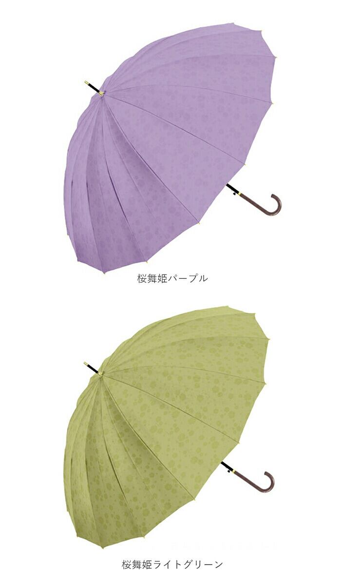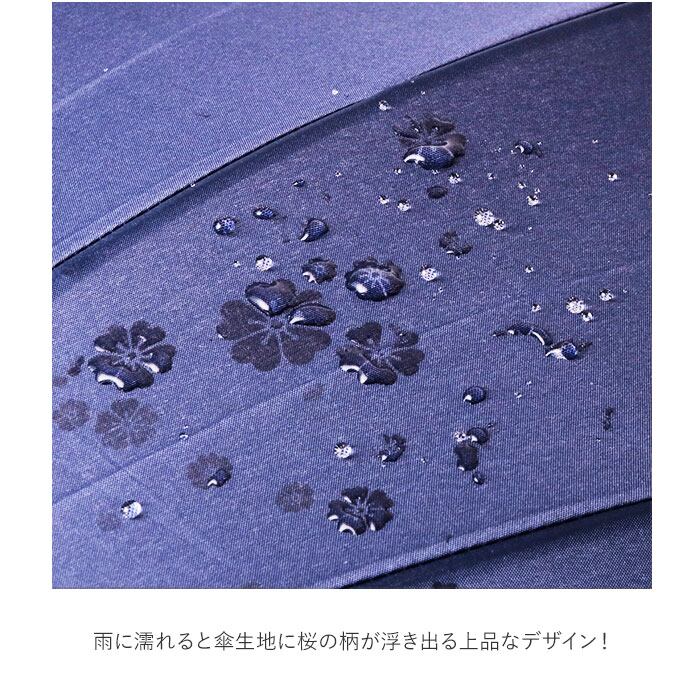 ・雨に濡れると傘生地に桜の柄が浮き出る上品なデザイン!桜舞姫、16本骨レディース傘。