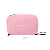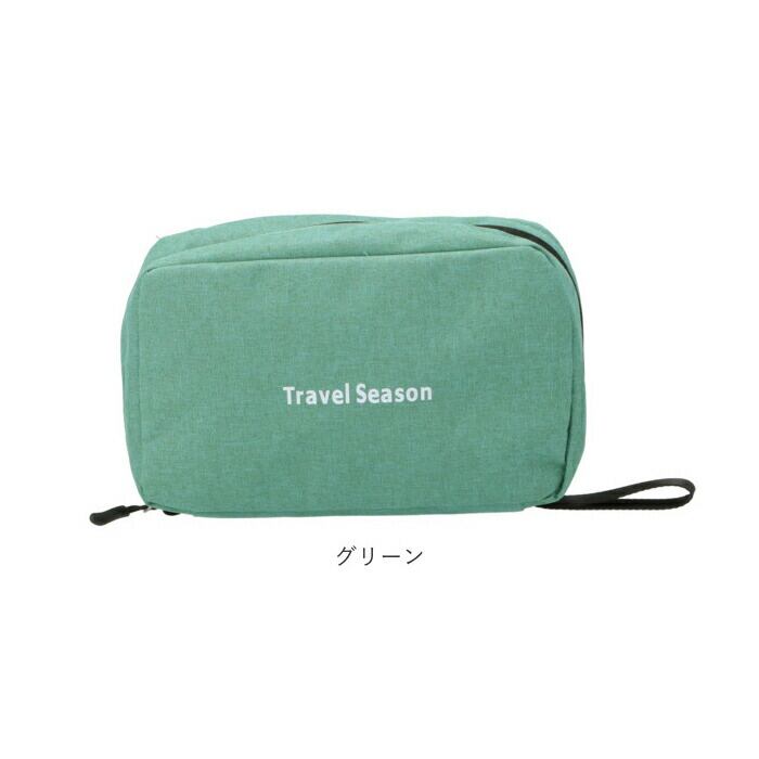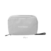 ・Travel Seasonのロゴが小さく入ったポーチ生地は、はっ水加工済み。洗面周りやホテルのユニットバスで濡れてしまったときも、サッと拭き取れてお手入れしやすい。