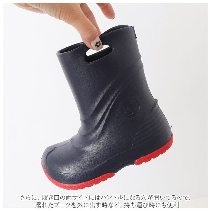 ・さらに、履き口の両サイドにはハンドルになる穴が開いてるので、濡れたブーツを外に出す時など、持ち運び時にも便利。
