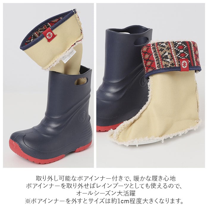 ・ボアインナーを取り外せばレインブーツとしても使えるので、オールシーズン大活躍。(※ボアインナーを外すとサイズは約1cm程度大きくなります。)
