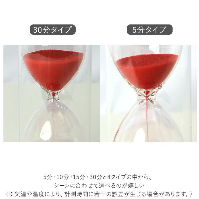 ・5分・10分・15分・30分と4タイプの中から、シーンに合わせて選べるのが嬉しい。(※気温や温度により、計測時間に若干の誤差が生じる場合があります。)