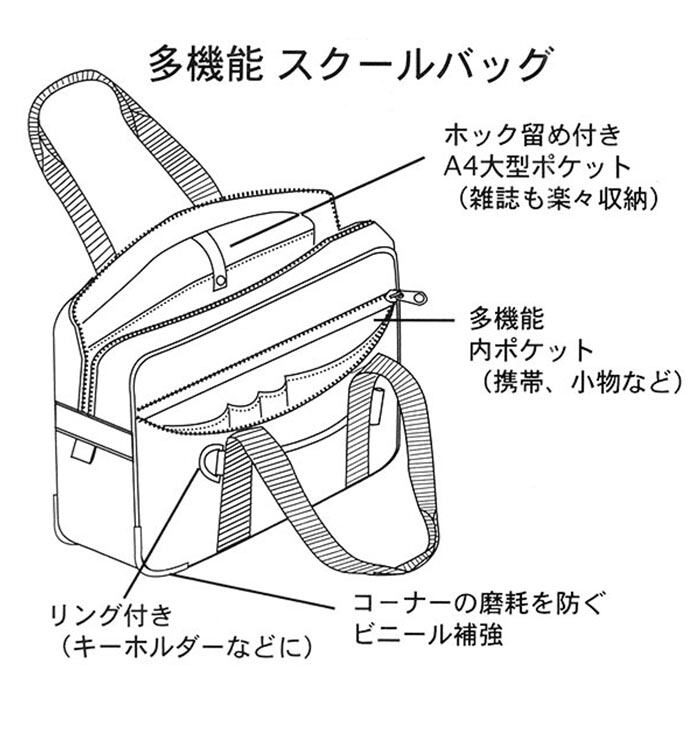 外側のファスナーポケットとオープンポケットに、多機能な内ポケットが付いた便利なスクールバッグです。