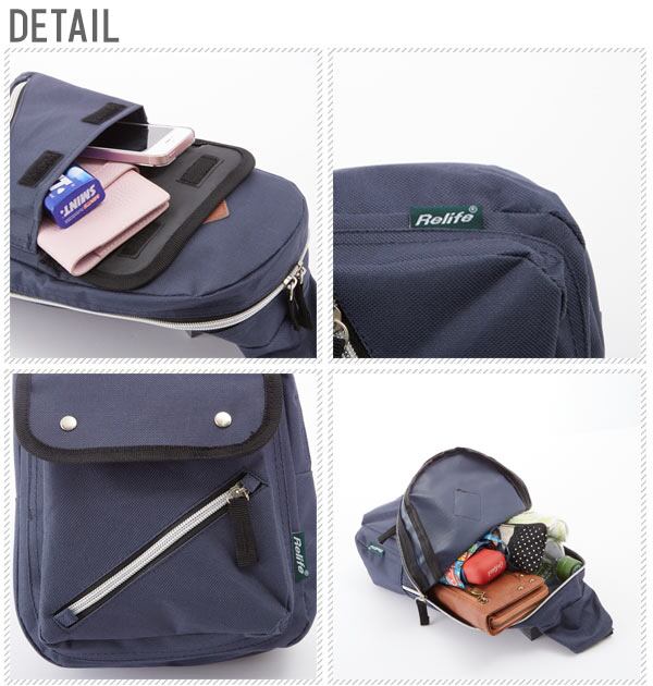 さらっとしたポリエステル素材のボディバッグ♪マジックテープ開閉の前面ポケットは、小物の収納に最適です。 メインルームは大きく開くダブルファスナー開閉式。500mlペットボトルもしっかり収納できます。 マチがあるので、幅がある二つ折り財布、スマホも楽々収納OK!