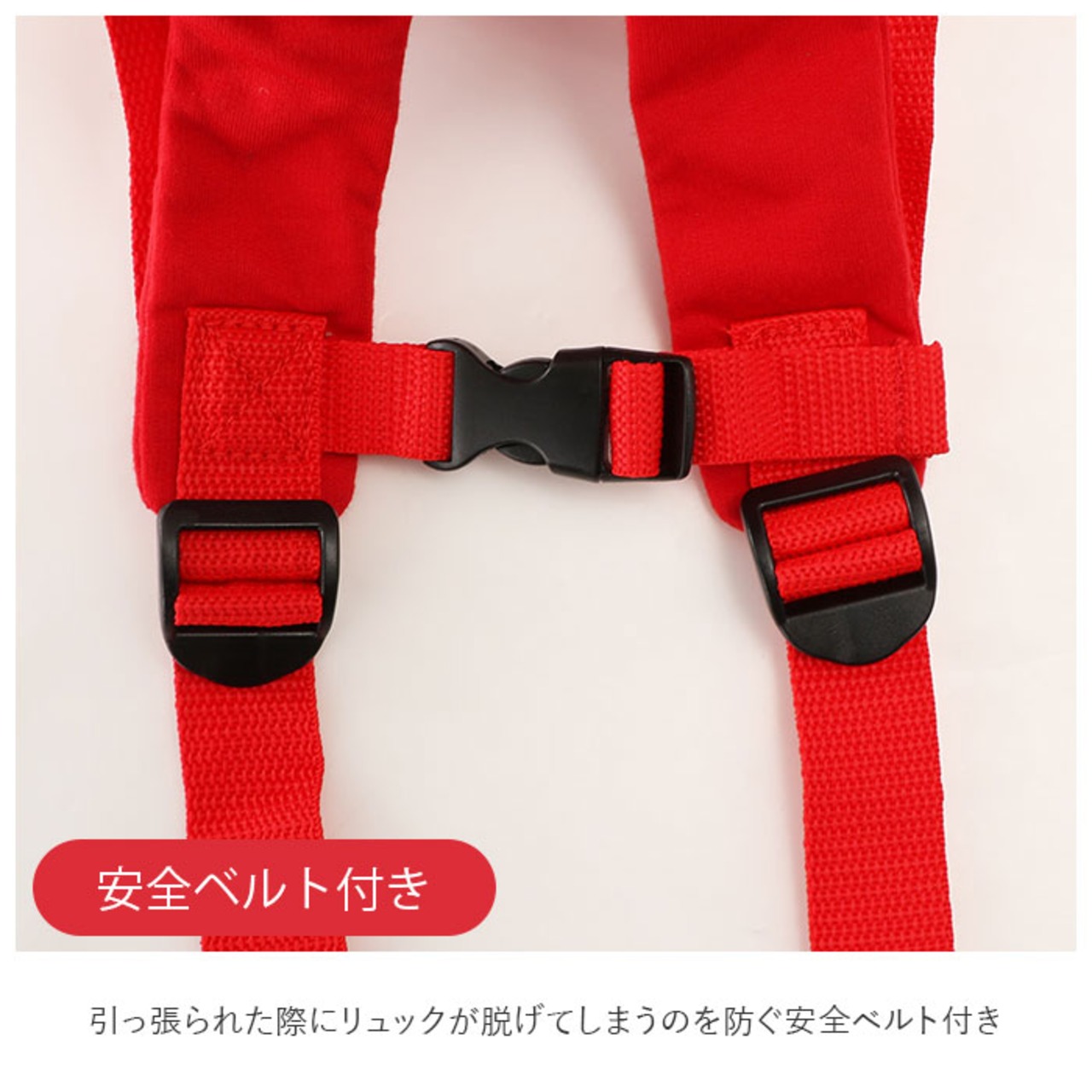 ・引っ張られた際にリュックが脱げてしまうのを防ぐ安全ベルト付き。