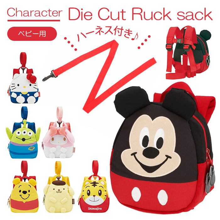 ・大好きなキャラクターと一緒にお出かけ♪急な飛び出しや迷子防止のためのハーネスが付いたダイカットリュック(ベビー用) 。