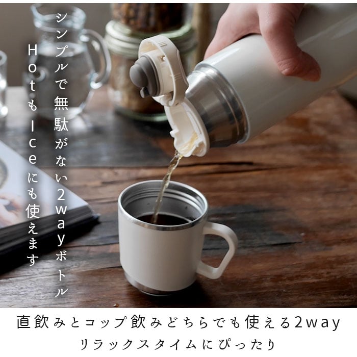 水筒 ワンタッチ かわいい 通販 保冷 保温 コップ付き 大人 500ml コップ付き水筒 直飲み水筒 ストレーナー付き おしゃれ ROCCO ロッコ ワンプッシュアンドコップボトル ワンプッシュ&コップボトル お弁当グッズ 大人用水筒 マグボトル キッチン用品