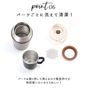 ※熱い飲み物を入れた場合は、注意してお飲みください。急に傾けると中の液体が勢いよく飛び出てやけどやケガの原因となります。断熱効果により、熱い飲み物を入れても本体の外側は熱くなりません。(コップは断熱されてないので、熱い飲み物を入れた際にはステンレスの部分を触らないよう注意してください。)