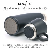 ・ボトル底面&コップ底面はどちらもシリコーン素材の滑り止め付きだから、仕事中のデスクの上にも安定して置いておける。