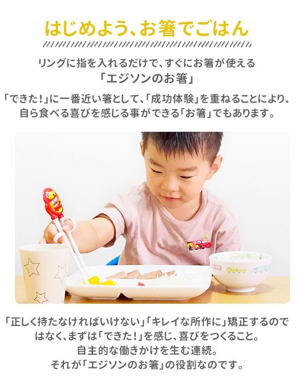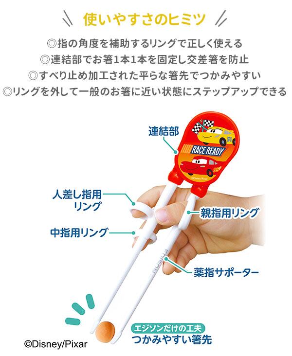 初めてでも正しく使える!エジソンのお箸 DISNEY シリーズ♪リングが指の位置を固定、使い方はとてもカンタンです。連結部で1本1本の箸を固定して指先交差を防止します。