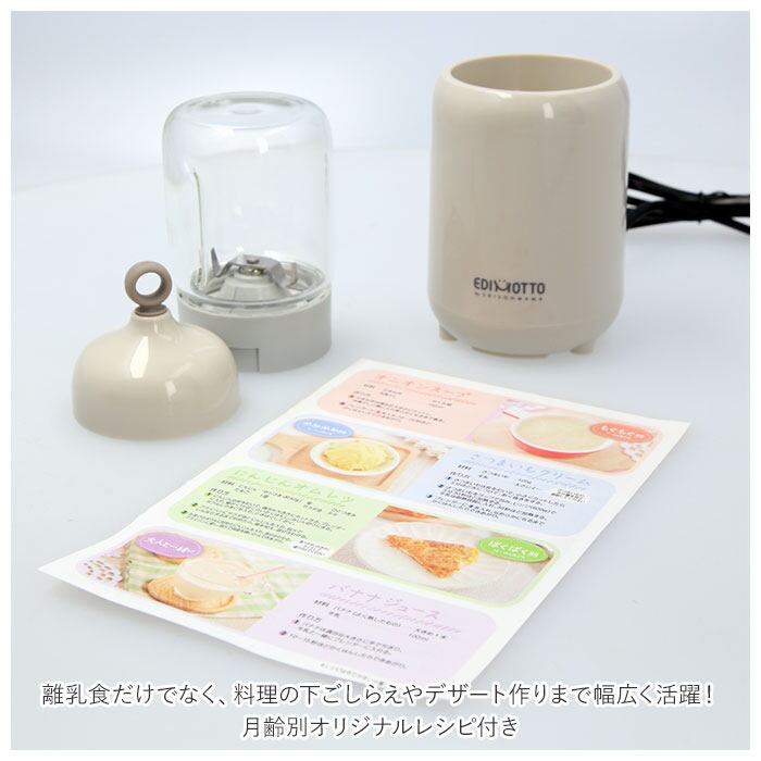 ・離乳食だけでなく、料理の下ごしらえやデザート作りまで幅広く活躍!月齢別オリジナルレシピ付き。