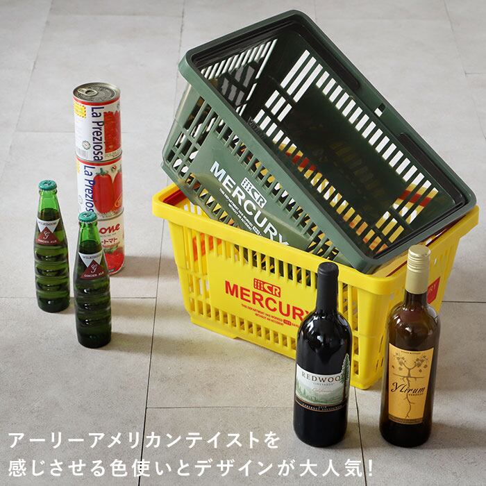 ・アメリカン雑貨ならではのおしゃれなカラーリングに、バスケットの前後左右にプリントされたマーキュリーのロゴがスタイリッシュ!スーパーのありふれたレジかごでは物足りない方にオススメ!