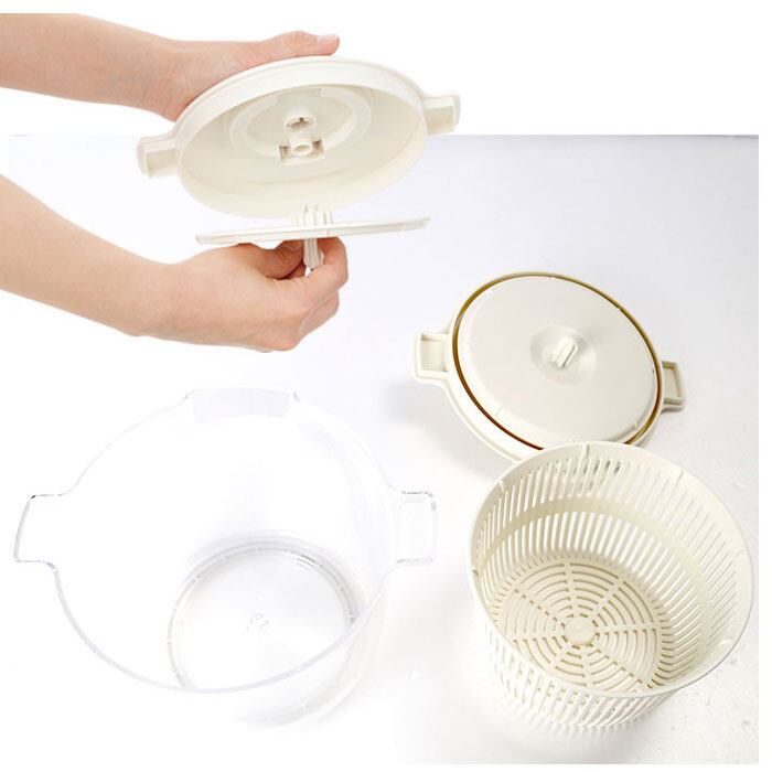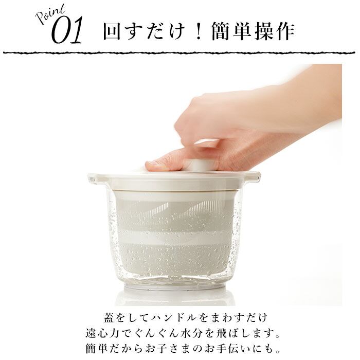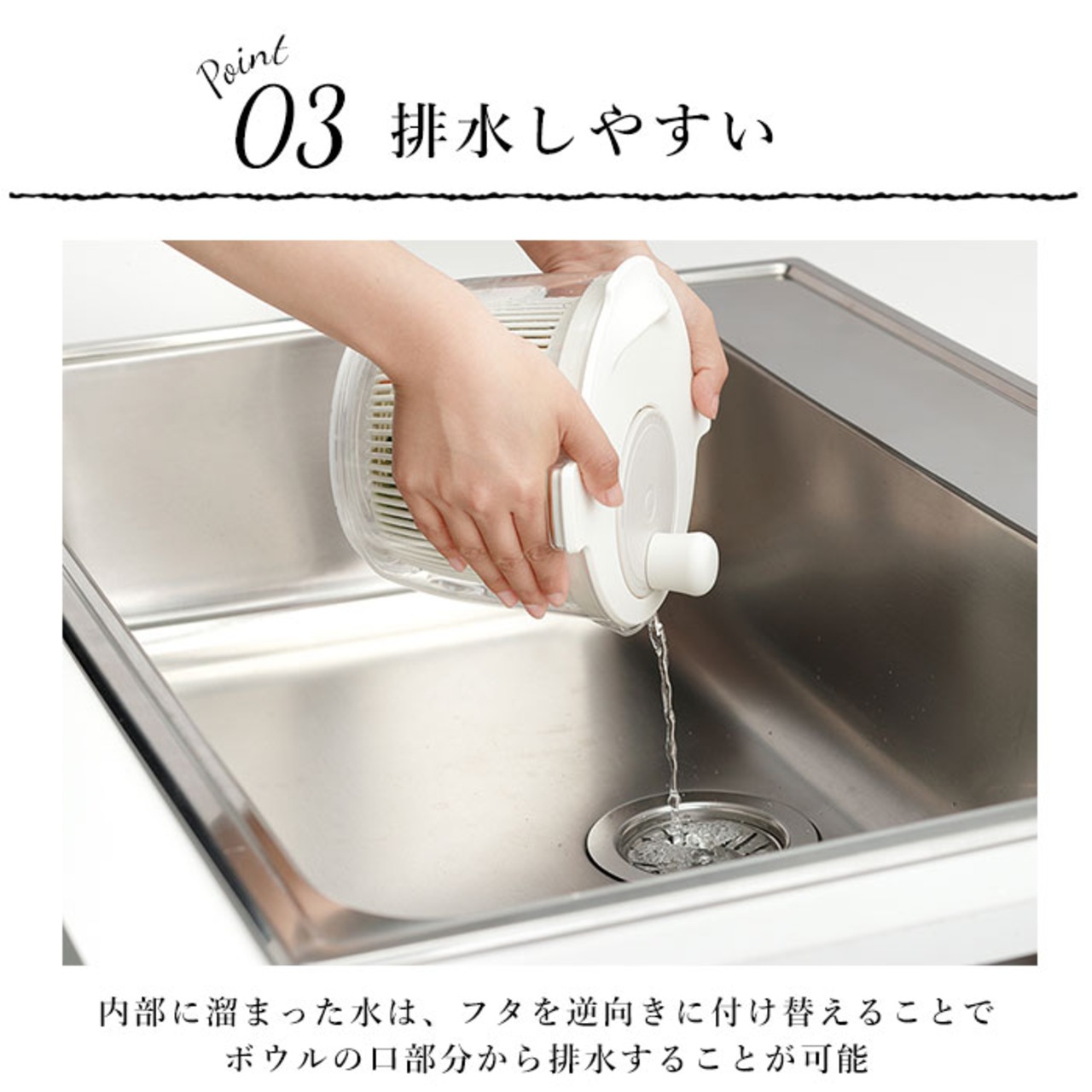 ・使い方は、まず「水切りかご」の中に野菜を入れて洗ったら、フタをしてハンドルを回すだけ!