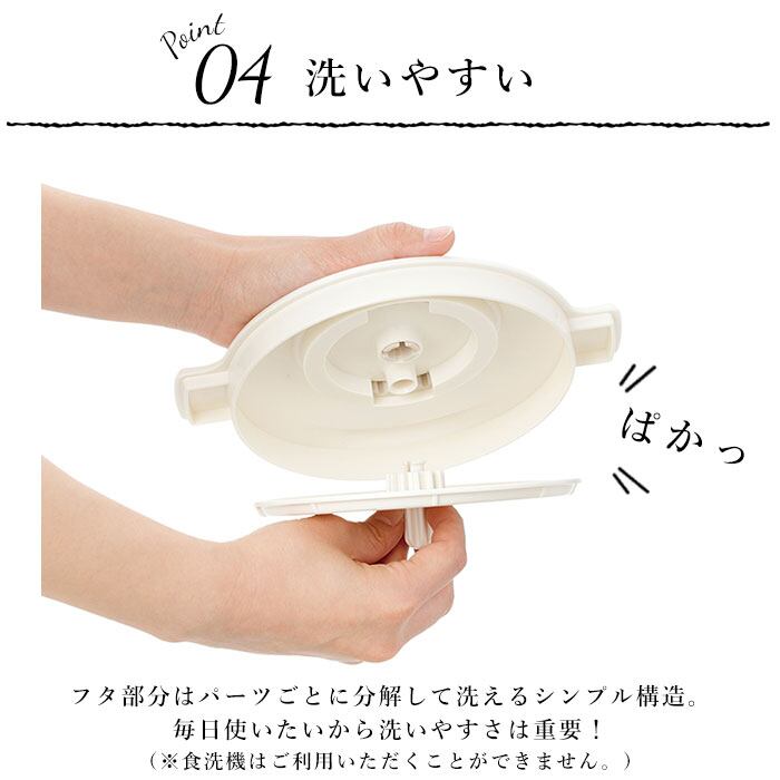 ・フタ部分はパーツごとに分解して洗えるシンプル構造。(※食洗機はご利用いただくことができません。)