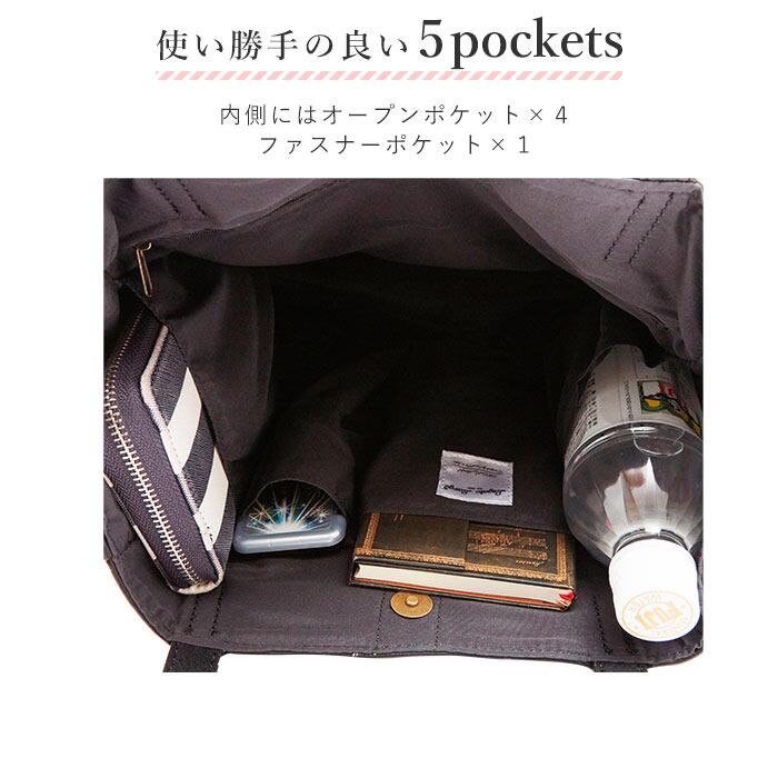 内側に5つのポケットがあるので、小物整理もできてとても便利♪