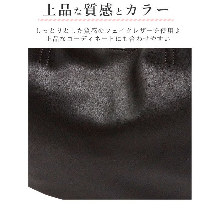 シンプルなデザインで上品!普段使いもできるレザー調ミニ?トートバッグです。ハンドルが長めなので肩掛けに使うこともできます。また、マチがあるのでマザーズバッグや通勤バッグ、旅行のサブバッグ等としてもOK!