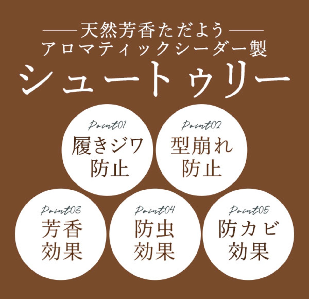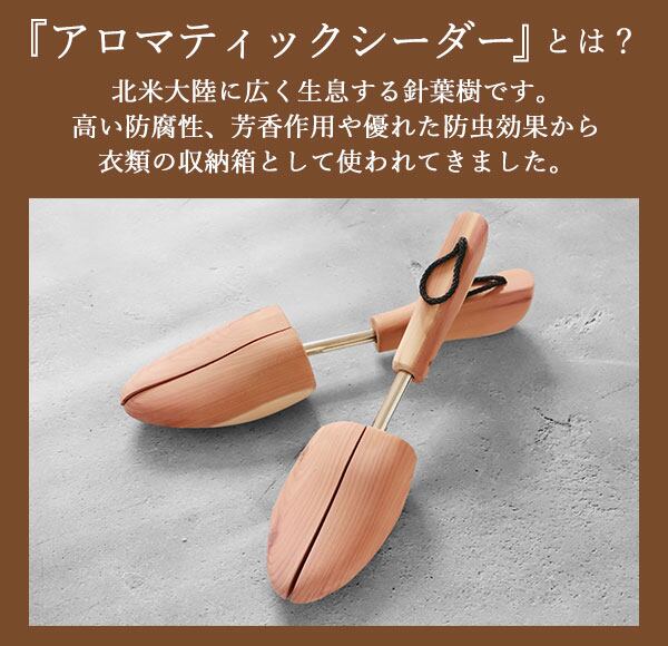 ・アロマティックシダーキーパーは靴の型くずれを防ぐと共に美しいフォルムを保ちます。