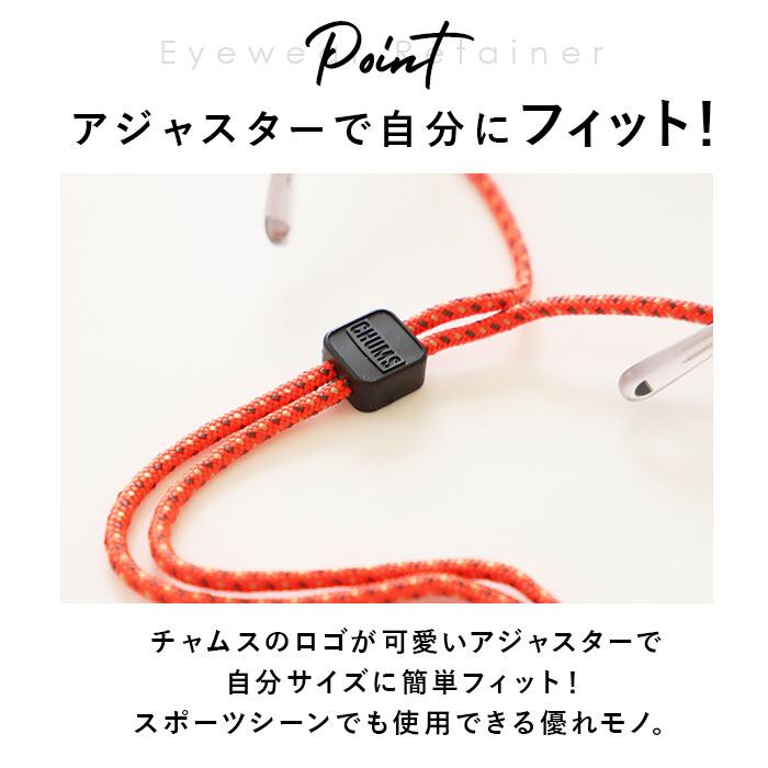 ・調節可能な、チャムスのロゴ入りアジャスターで自分サイズに簡単フィット!